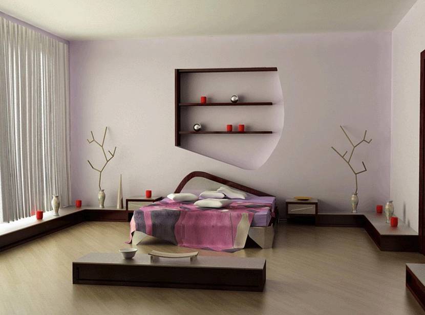 Пустую стену в спальне можно декорировать неглубокой конструкцией. Это будет не только удобно, но и оригинально. Это модный, но не избитый вариант создания интерьера. Обычно углубления делают у изголовья кровати. Дополнительно располагают удобные полки, встраивают светильники. Если все составить грамотно с дизайнерской точки зрения, то спальная зона приобретет поистине волшебный вид.
