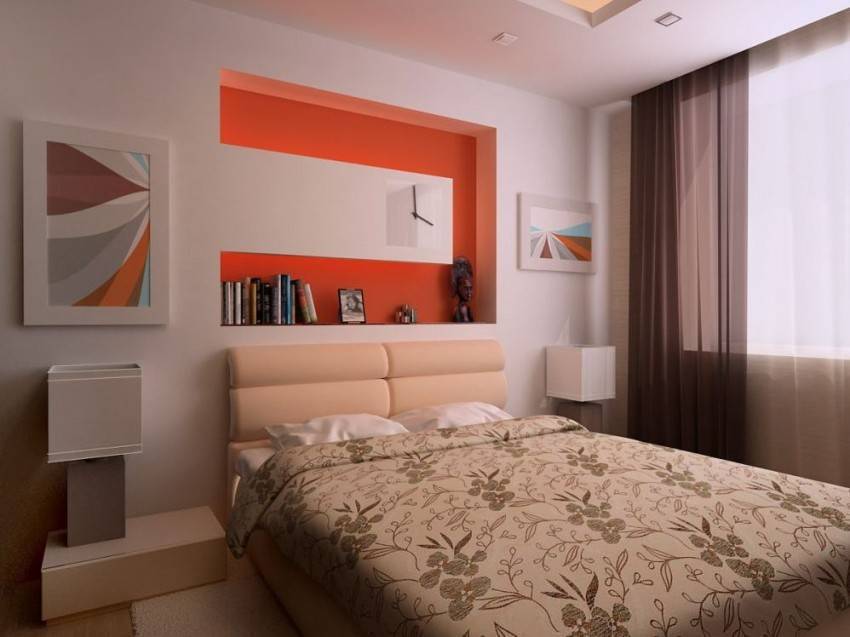 Полочки или шкаф добавят конструкции практичности. В большую нишу можно поставить шкаф для вещей. На узких полках поставить свечи, сувениры, фото, книги. Дизайн спальни дополнит мягкая подсветка в глубине алькова. Хорошей идеей будет уголок с мягким сидением для чаепития или чтения. В последнем случае нужен яркий светильник.
