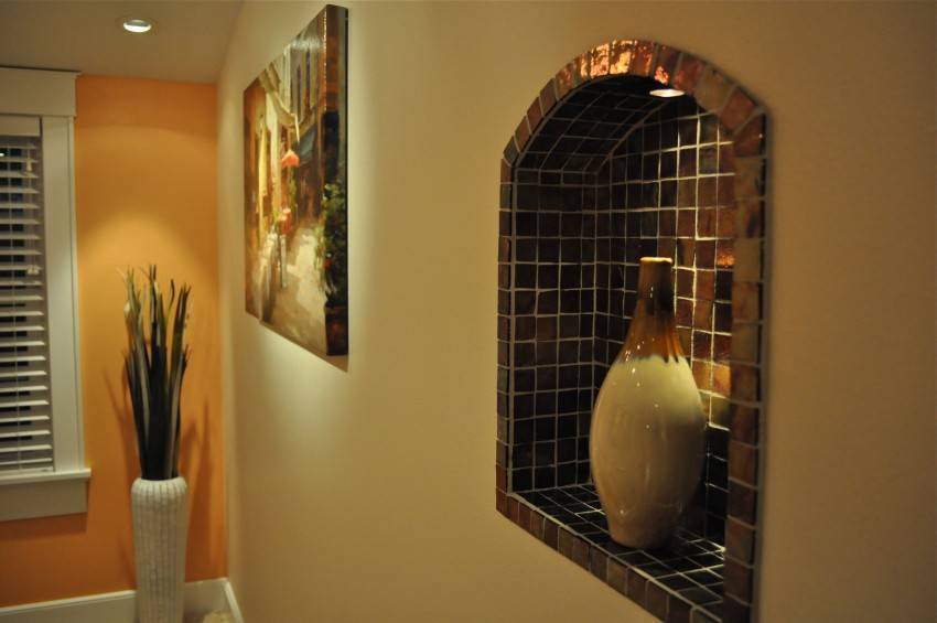 Декоративное углубление в стене можно использовать для размещения любимых картин или семейных фотографий. Время от времени вы также можете менять отдельные элементы отделки, делая интерьер интересным.