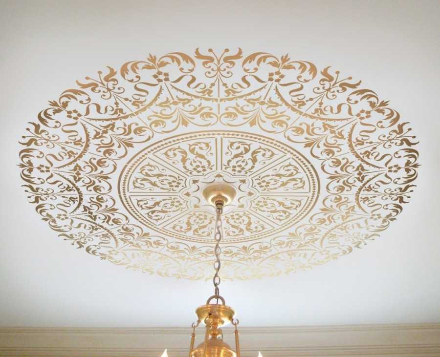 Нанесение рисунков на потолок через трафарет