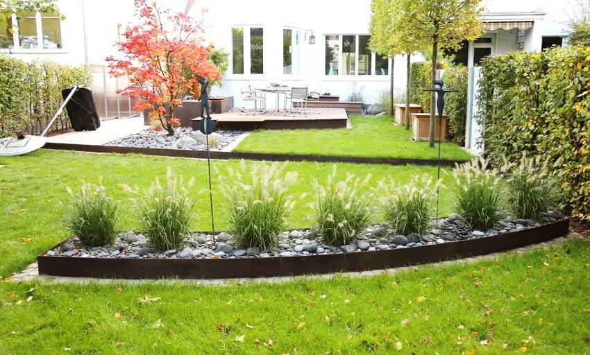 - Для ограничения контуров газонов. Это еще один прием, применяемый в ландшафтном декоре, дающий возможность расширить область использования зеленых насаждений.