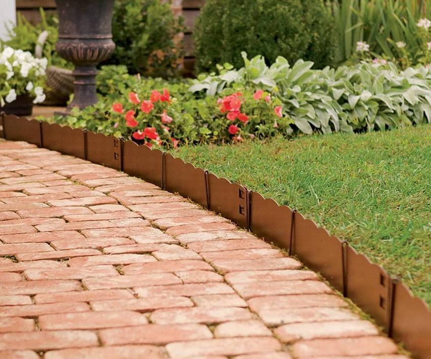 Пластиковая лента для бордюра внешне имеет форму колодок Источник idei-landshafta.ru