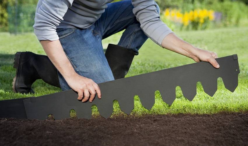 При монтаже его заглубляют таким образом, чтобы цветы не распространялись на соседние участки. Часто этот вариант подходит для ограждения садовых дорожек неровной формы.