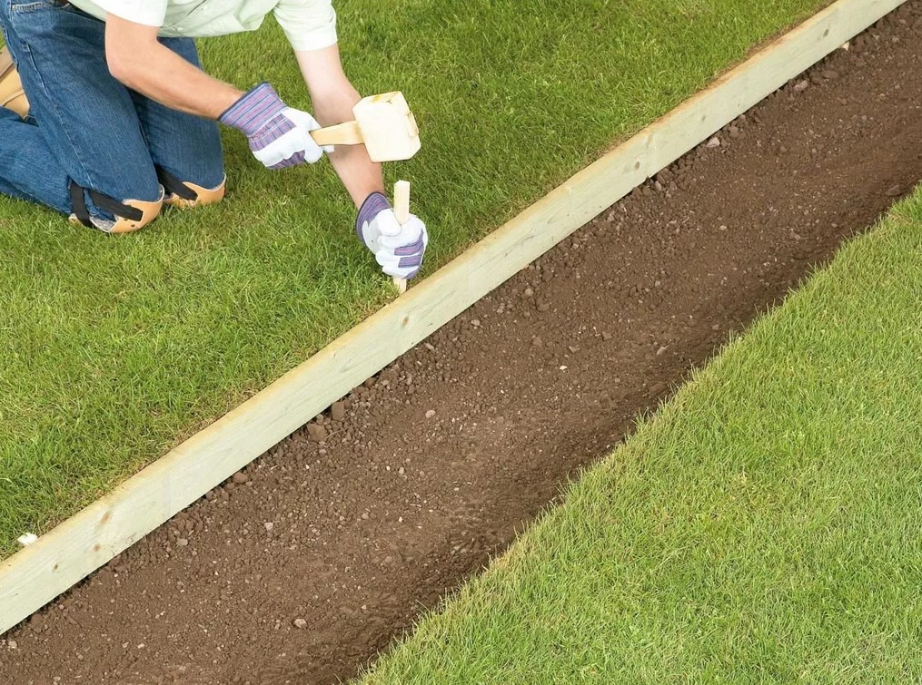 Перед тем, как вкопать бордюрную ленту для газона, нужно подготовить необходимые для работы инструменты. Для установки ограждения понадобятся: