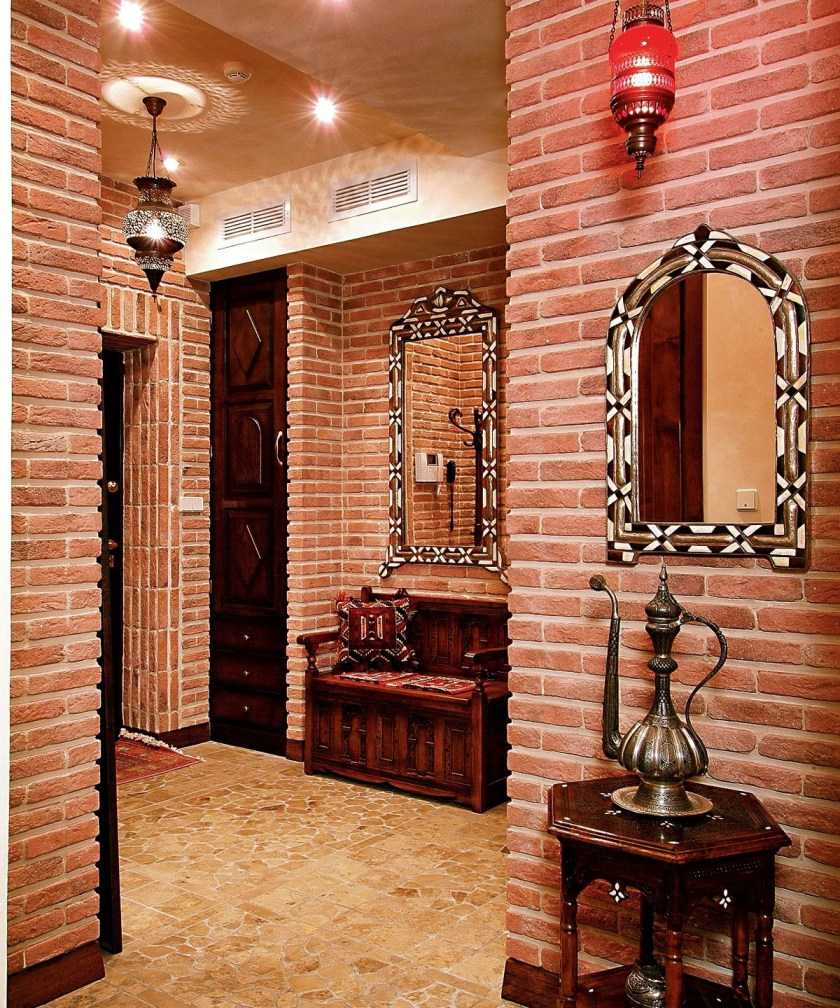 Нельзя не отметить существование еще одной разновидности отделочных декоративных камней – клинкерной плитки, которая по внешнему виду схожа с кирпичной кладкой. Для ее изготовления используется глина, а технология схожа с кирпичной – обжиг в печи и дальнейшая глазировка. Основное отличие заключается в том, что толщина такой плитки составляет всего 1-3 см. Необходимо отметить широкое использование такого типа декоративного камня для отделки прихожей в современных стилях дизайна – лофт, хай-тек и т.п.
