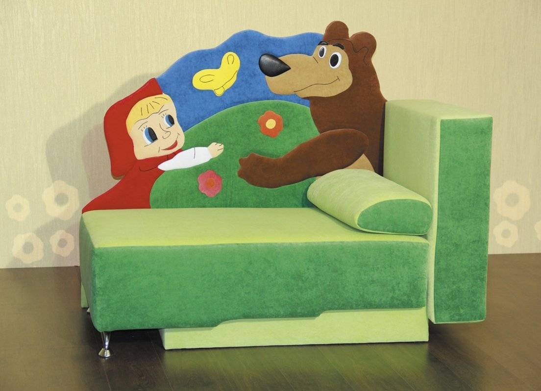Модели кроватей в виде мишек, паровозиков, зайчиков подойдут на недолгий период, пока малыш не подрастет. Для продолжительного периода эксплуатации выбирают вариант нейтральной цветовой гаммы, который украшается красивыми, забавными подушками в виде животных или любимых героев мультфильмов. Обивка желательна с водоотталкивающей функцией, неплохой вариант – съемный чехол во избежание частых загрязнений и чисток.