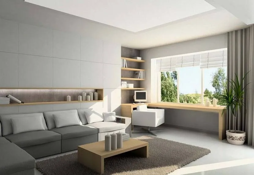 простой интерьер, как на следующем фото, или сложный, когда гостиную комбинируют с рабочим кабинетом, требует зонирования. Это обязательное условие для небольшой комнаты, так как только жесткая структура визуально превращает ее в просторную;
