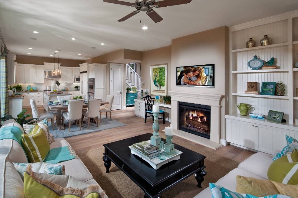 Другим способом зонирования интерьера кухни-столовой-гостиной считается использование разнообразного цветового оформления