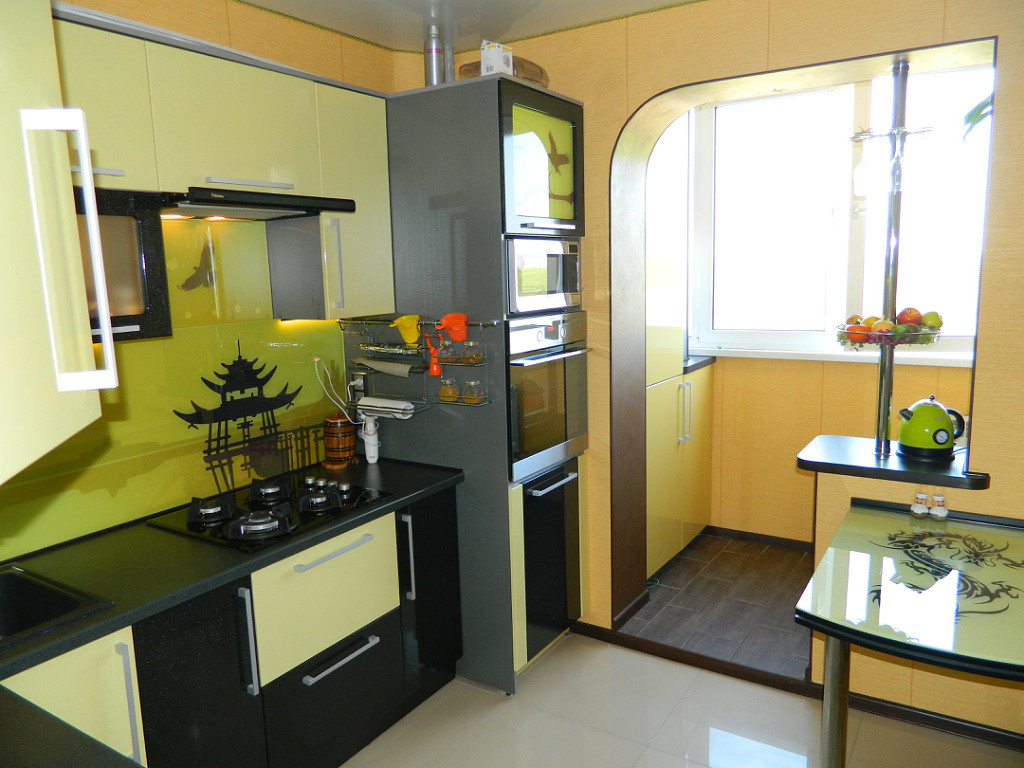 Дизайн маленькой кухни с балконом в этом случае будет оптимальным с использованием традиционных, но эффективных методов: