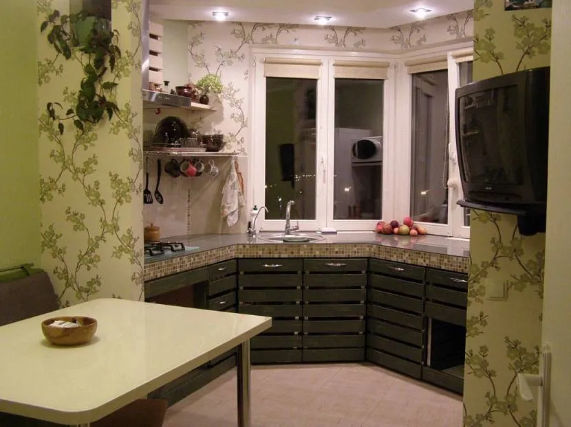 Сама кухня, в случае, если основная мебель переносится на балкон, освобождается от объёмных ящиков и техники. Поэтому в освободившемся помещении размещается удобный стол, диван, стул, вешается телевизор. У вас получилась большая зона для отдыха.