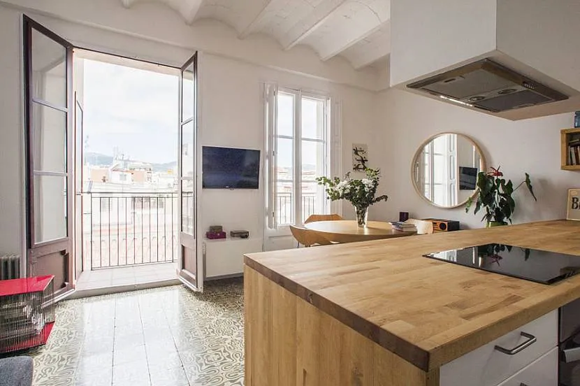 В первом случае вам придётся демонтировать балконные окна и двери, а стену оставить нетронутой. «Останки» стены делают полезным элементом, разместив на ней поверхность для варки или превратив в обеденный стол/барную стойку.