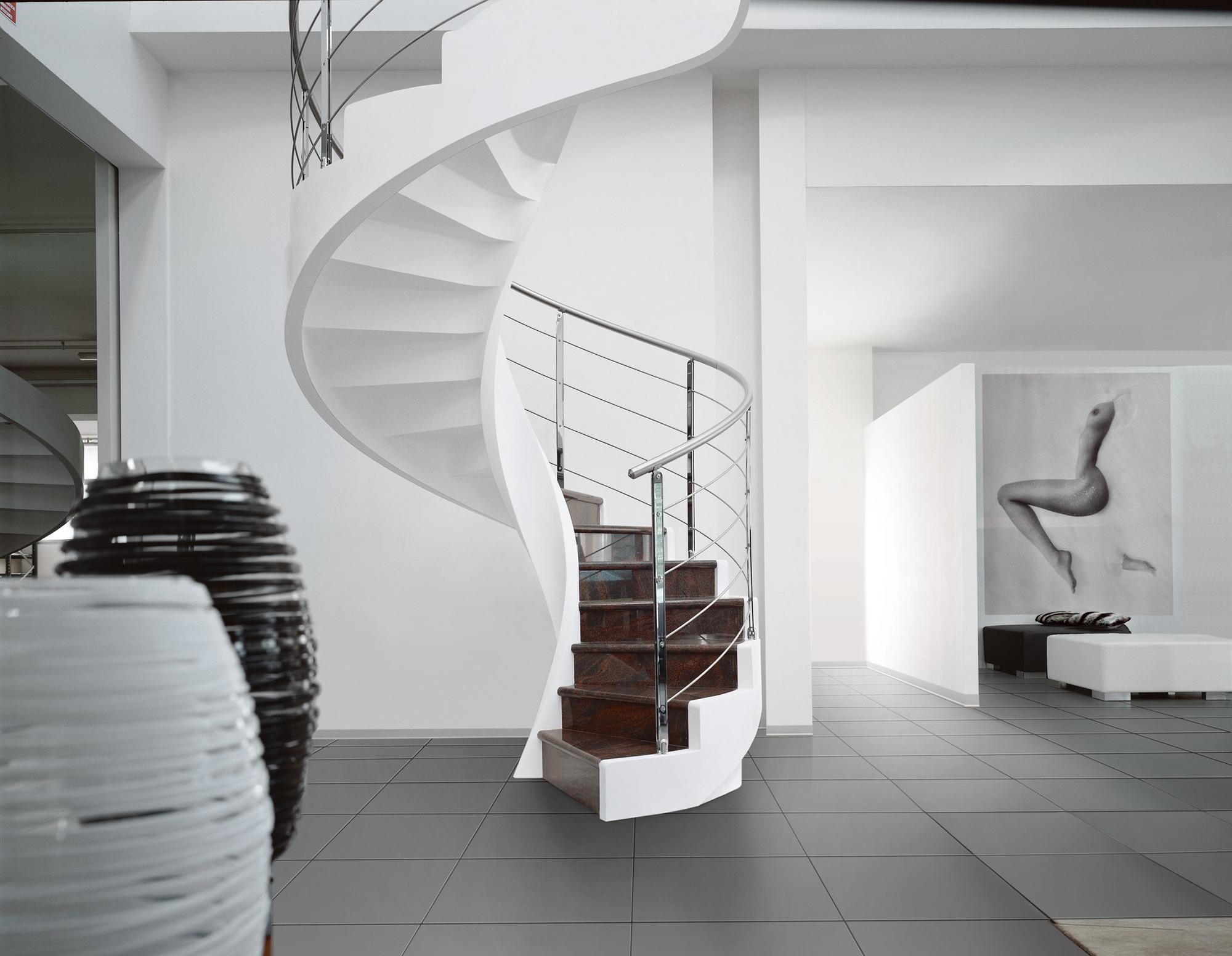 При помощи лестницы правильного вида и формы можно визуально приподнять потолок.