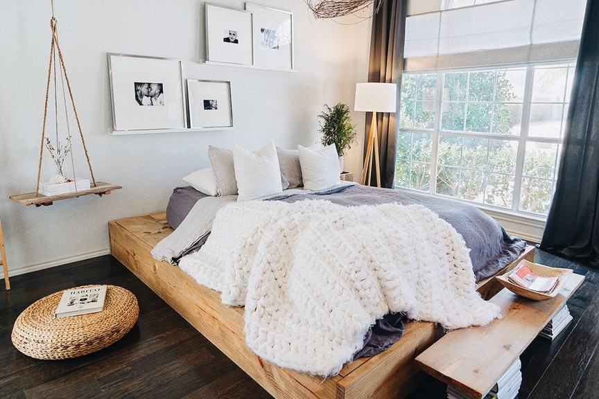 Теперь украшение кровати: подушки, пледы. Несколько небольших думок могут полностью изменить восприятие комнаты. Плюс также в том, что декоративные наволочки можно менять хоть каждый сезон.