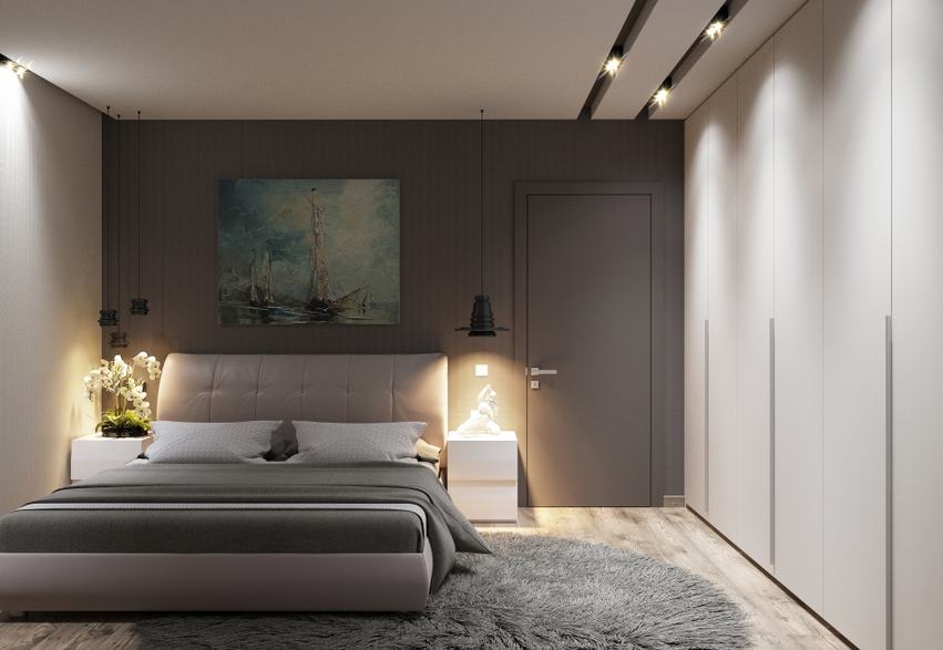 Последний важный нюанс — освещение. Заранее продумайте где именно будут находиться источники света: наличие одной потолочной люстры в спальне неудобно, ее обязательно дополнять светильниками на прикроватных тумбах. А если удалось выделить место под шкаф или стол — возле них также должны быть свои источники.