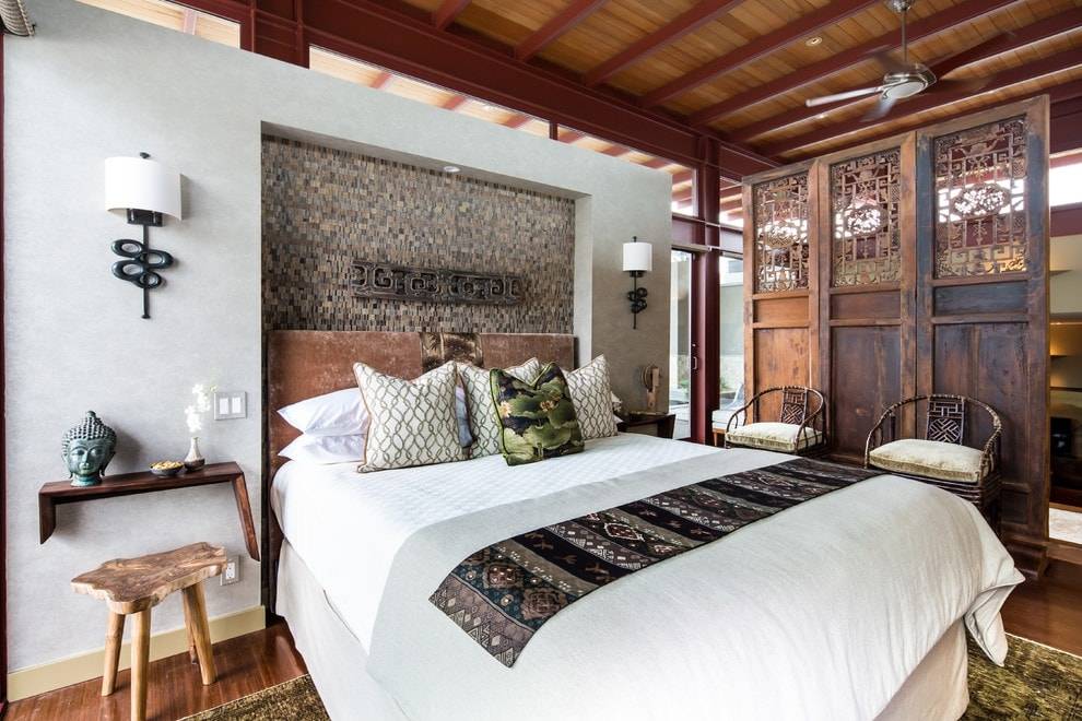 Интеграция пространства, также известная как концепция открытого пространства, является хорошим способом устранения давящего чувства, которое может возникнуть в небольшом замкнутом пространстве. Можно использовать приподнятую кровать, под которой достаточно места для хранения всех необходимых вещей. Небольшой вертикальный шкаф поможет отделить одну зону спальни от другой.