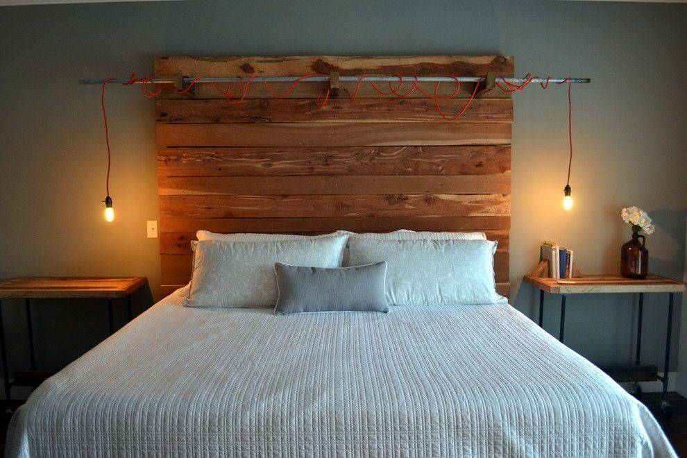 Очень часто кровати продаются в комплекте с пристраиваемыми прикроватными тумбочками, что упрощает дизайнерское решение, но требует того, чтобы у изголовья кровати было достаточно свободного места. В узкой и длинной комнате типа «вагончик» такой комплект вряд ли будет уместен.