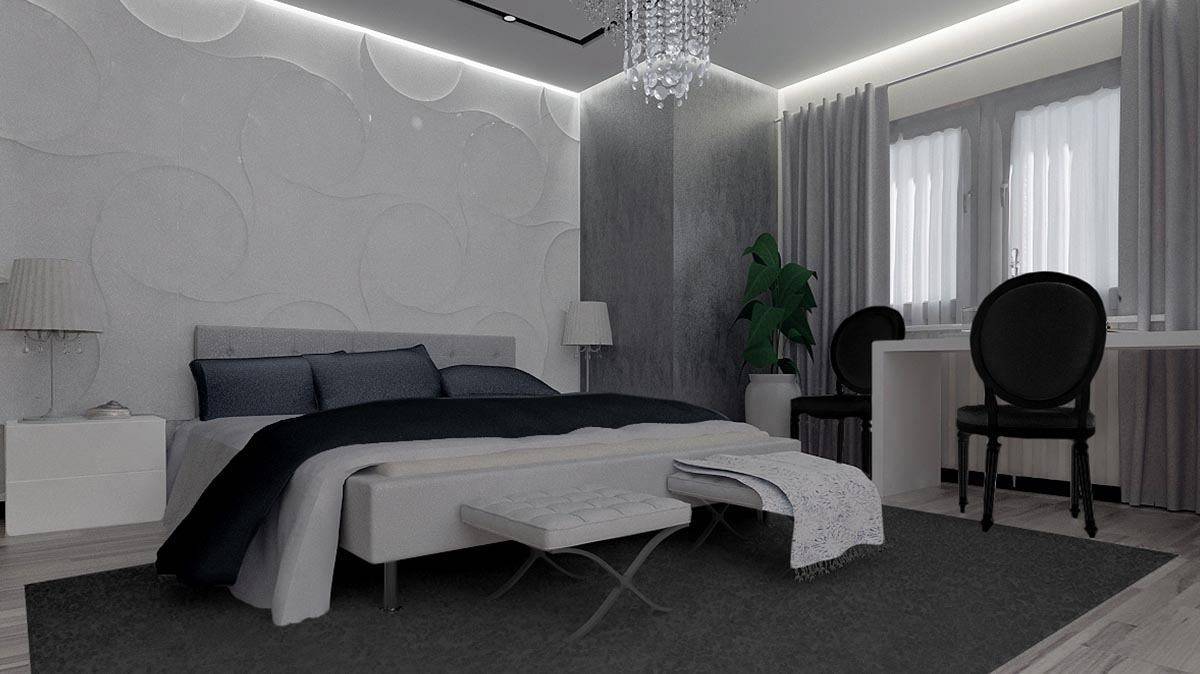 Чтобы визуально расширить пространство используйте светлые тона. Неизменным королем в этом случае является белый. Для спальни также отлично подходит серый. Психологи утверждают, что он положительно влияет на нервную систему человека, и способствует полному восстановлению