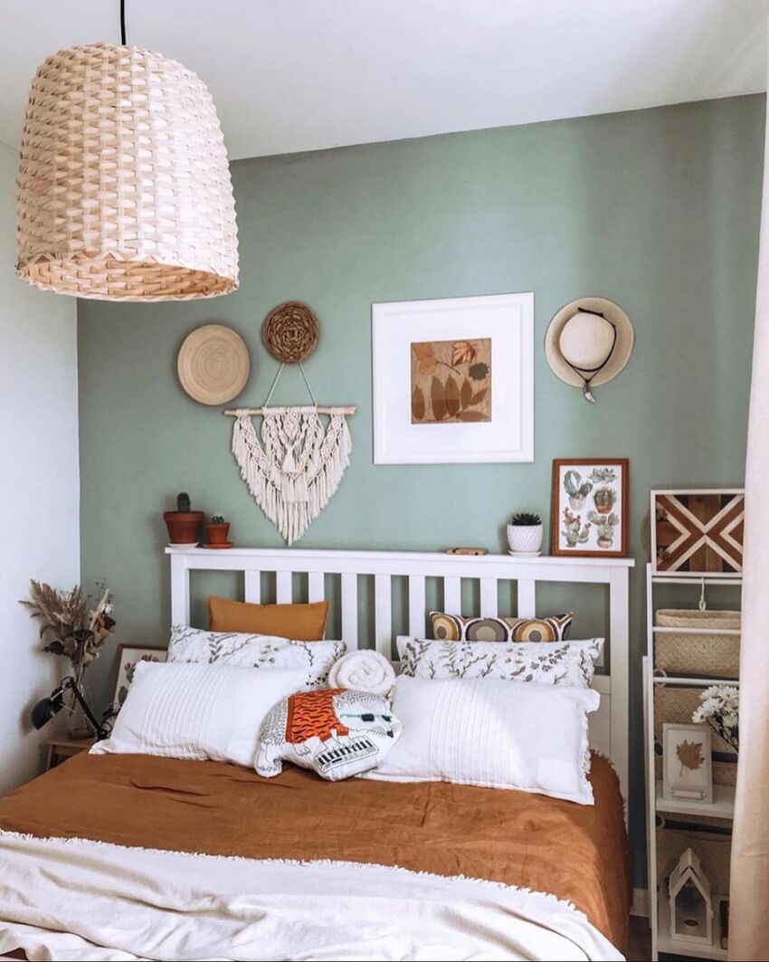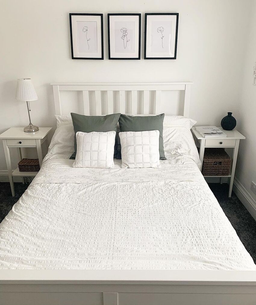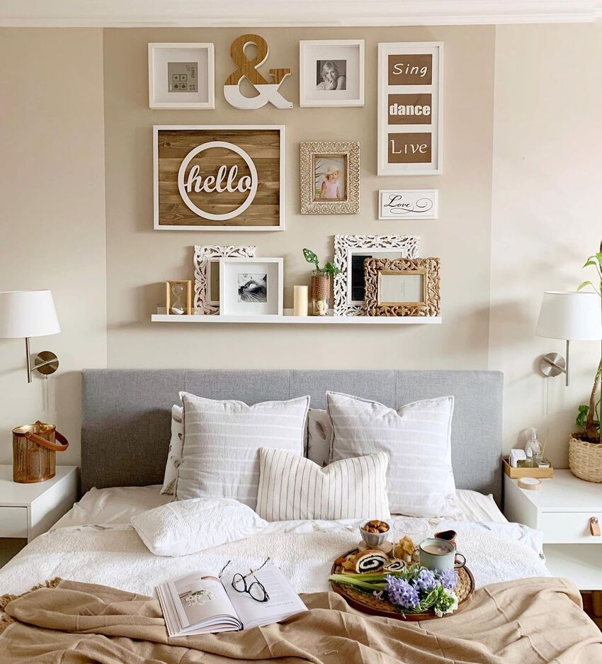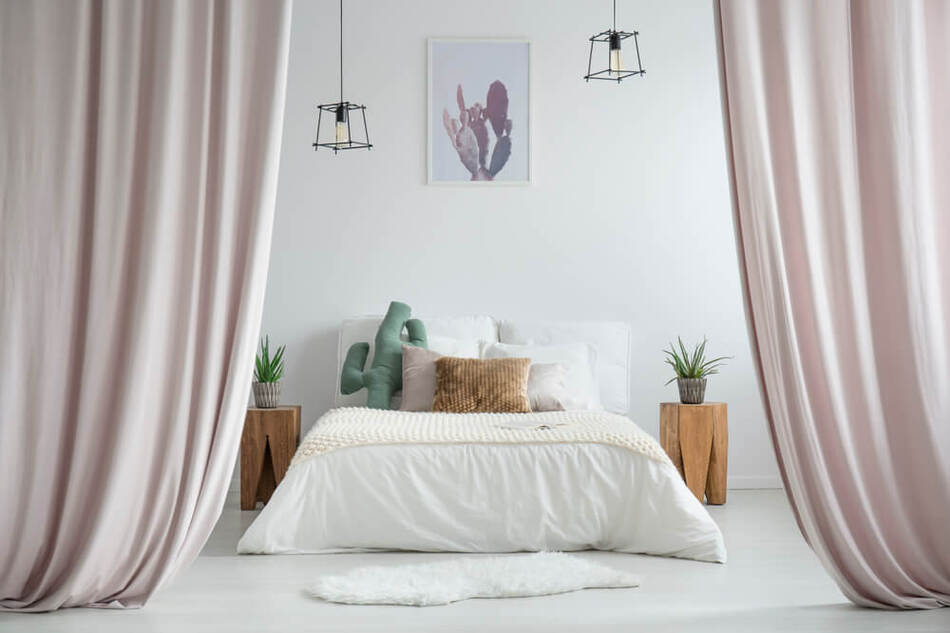 Чтобы спальня выглядела уютно, следует добавить текстурный текстиль, гирлянды или живые растения.
