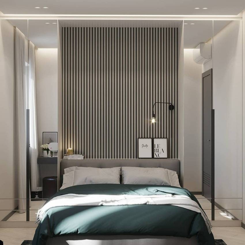 Установка зеркала рядом с кроватью. Этот прием позволит удлинить пространство.