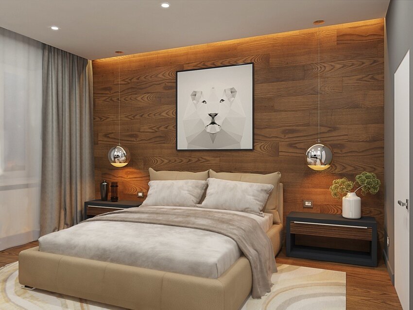 Если же спальня используется только после захода солнца, тогда важно обращать внимание на то, как отделка стен будет выглядеть при искусственном освещении