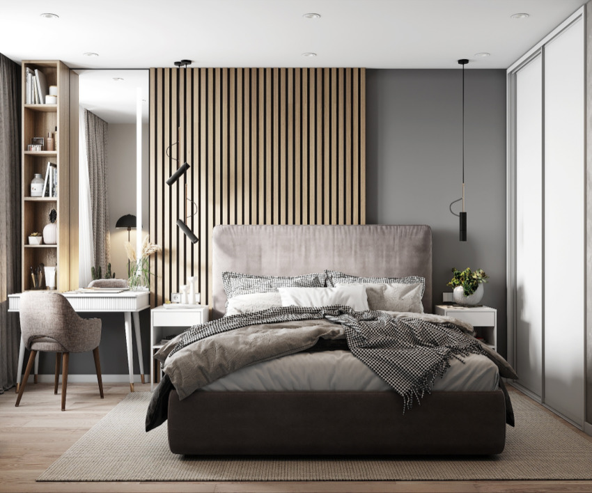 Этот стиль идеален для маленьких спален. Минимализм, как следует из названия стиля, делает упор на минимальном количестве мебели и декора.