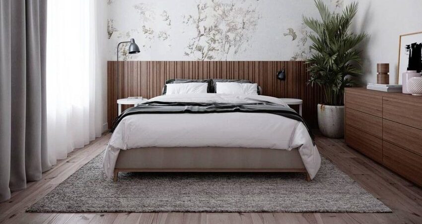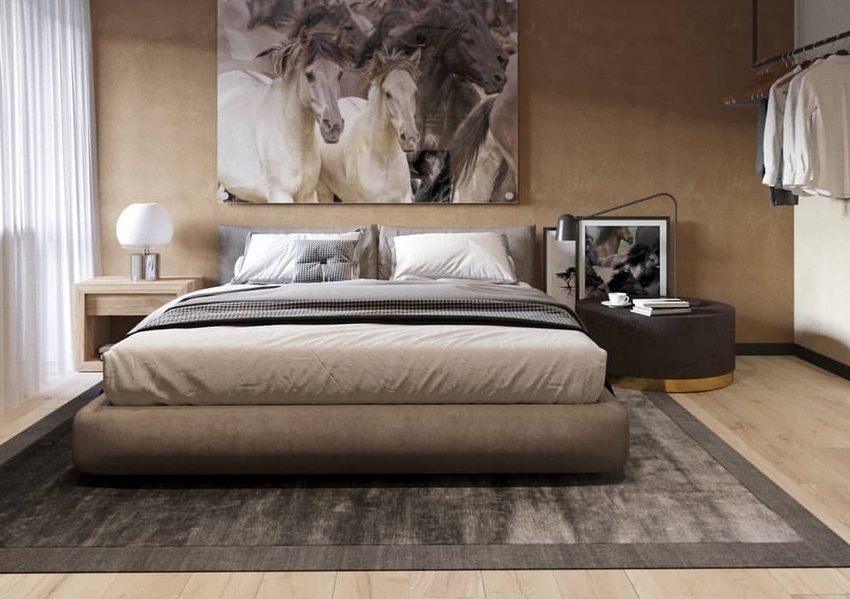 - Напольное покрытие нужно класть не вдоль, а поперек. Так небольшая прямоугольная спальня будет выглядеть шире.