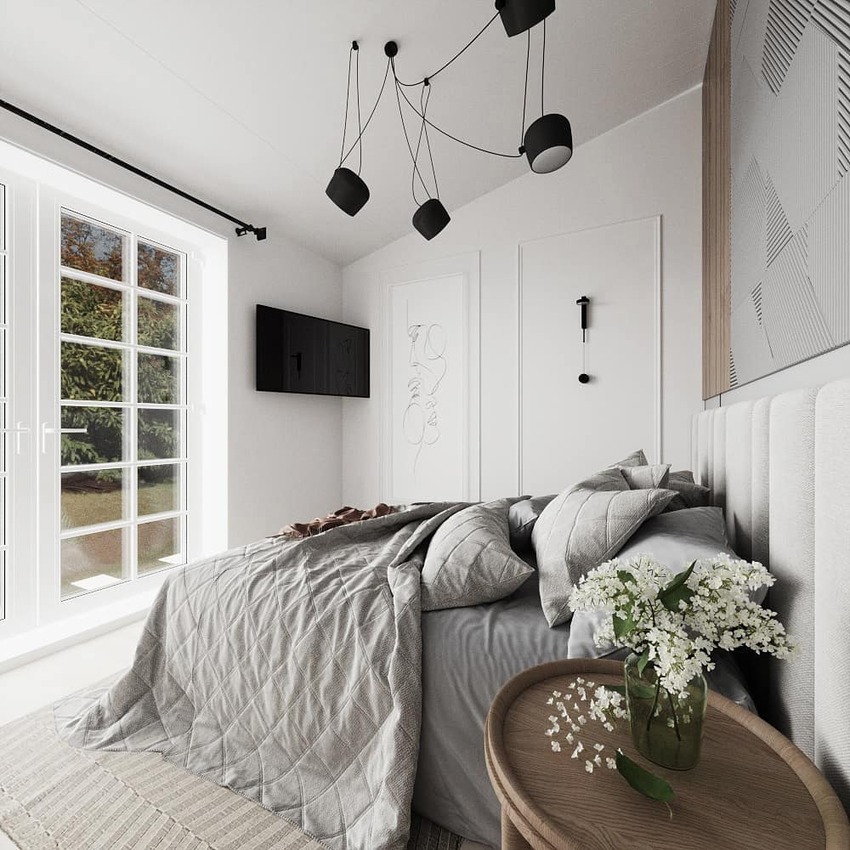 Дизайн спальни в скандинавском стиле — универсальный вариант для всех помещений маленького размера, в том числе для спальных комнат 9 кв. м.