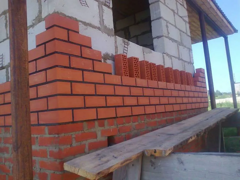 - Для начала стена возводится чуть выше будущего окна, проем по ширине соблюдается отступом кладки.