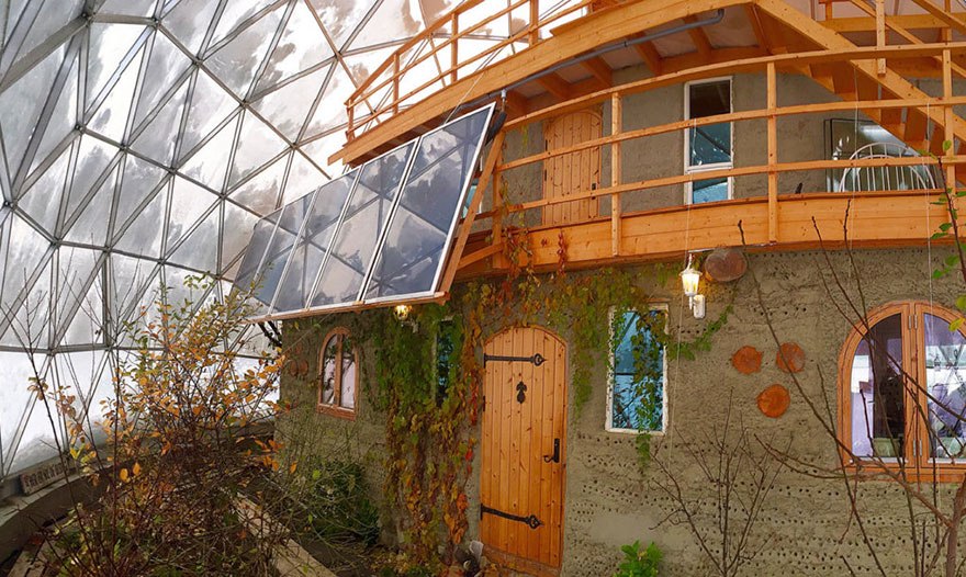 В 2011-2013 годах на острове Сандорноя в северной части Норвегии энтузиастами возведен купольный дом-теплица Naturhuset . Место отличается суровым климатом, шквальный ветер и холод — обычное явление для норвежского Заполярья. Особенность здания заключается в его защитной оболочке — стеклянном геодезическом куполе, под которым располагается не только сам дом, но и небольшой земельный участок с растениями.