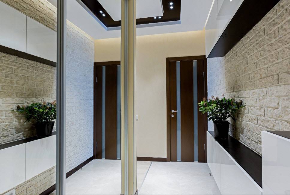Также для интерьера характерно использование раздвижных дверей, фасадов, открывающихся нажатием руки, встроенных в стены технических устройств, управляемых с помощью пульта. Даже мобильные перегородки могут выполнять сразу несколько функций: зонировать помещение, заменять собой доску для совещаний или напоминаний.