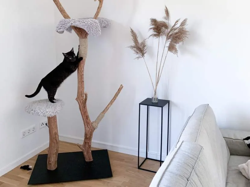 Следите, чтобы материал был полностью безопасным, не содержал вредных веществ. Коты обладают чувствительным нюхом, поэтому готовое сооружение не должно содержать лишних запахов после покраски, поклейки, обработки и так далее.