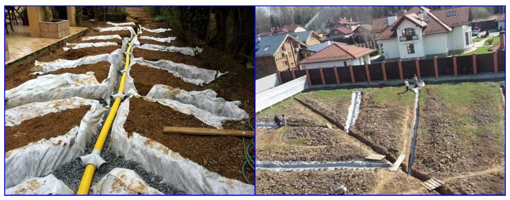 Рис. 15 Примеры размещения на участках дренажных систем