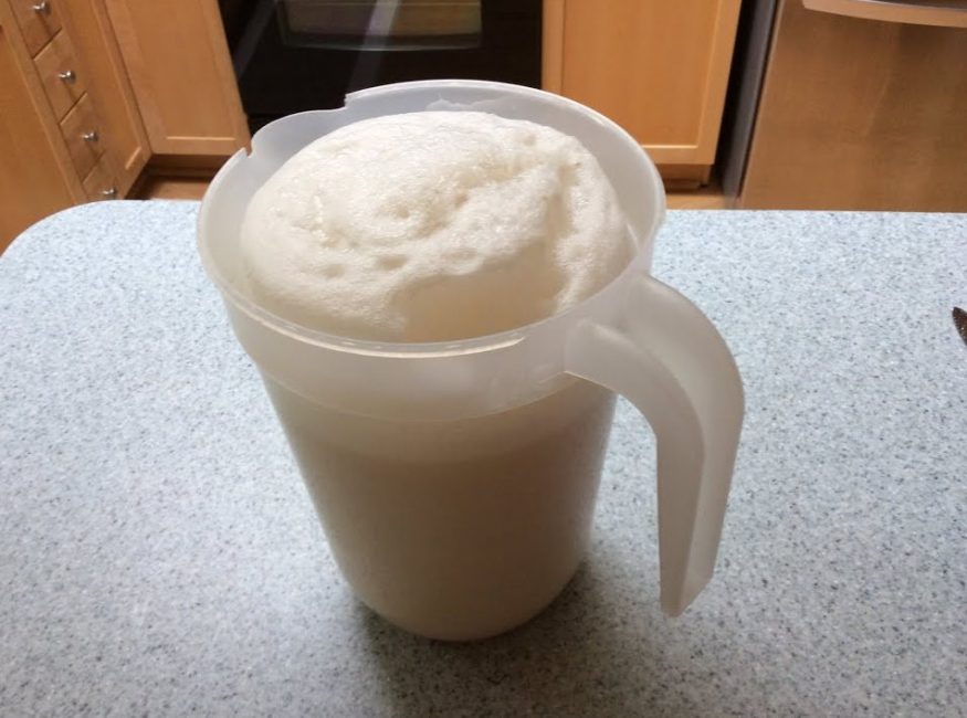 - 20 г продукта размешать в бутыле чистой воды, всыпать сахар в объеме 2-3 ст л. Своеобразную опару следует держать в тепле 7 суток, после чего добавить 10–12 л воды.