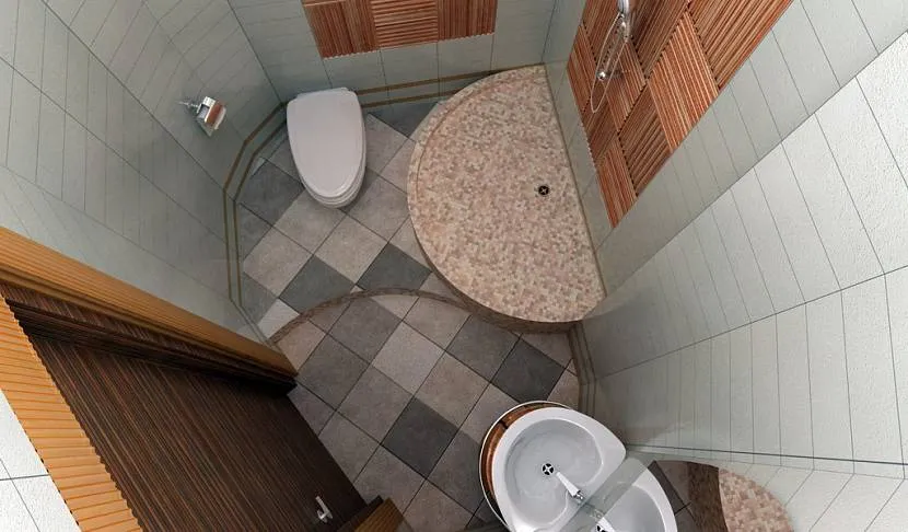 - Сама душевая кабинка, причем для чрезмерно маленьких комнатушек, оптимальной станет полукруглая ее форма.