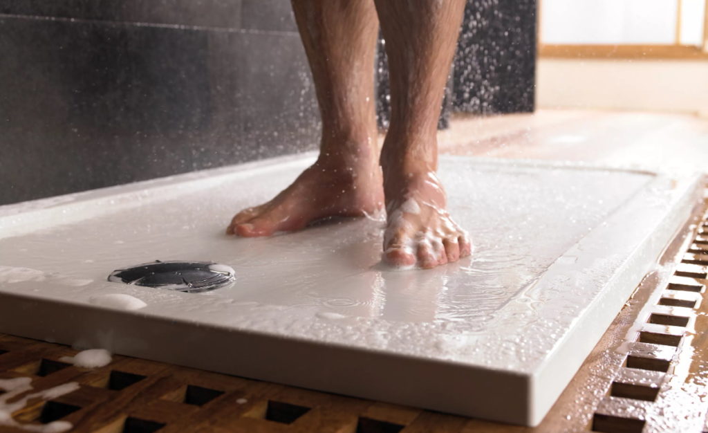 По этой же причине очень важно правильно установить низкий поддон. Перед его монтажом в полу необходимо подготовить небольшое углубление, при этом слегка наклоненное в сторону слива — так вода будет попадать в канализацию без задержек и не выльется за края поддона