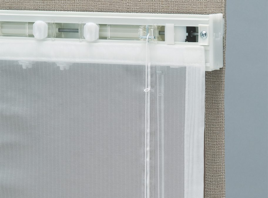 шторы вешаются друг за другом так, чтобы одна слегла заходила за другую и свисала прямым полотном;