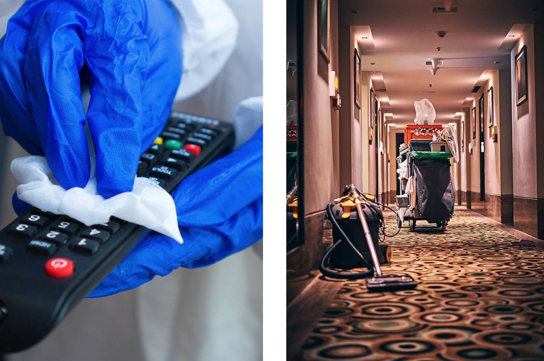 дезинфекция ключ-карт; дополнительная глубокая очистка поверхностей в общественных местах, к которым часто прикасаются; таблички со временем последней уборки, дополнительное внимание к уборке в бассейнах, фитнес-центрах и клубных гостиных; наглядное подтверждение проведённой дезинфекции предметов в номерах (например, стеклянной посуды, телевизионного пульта)
