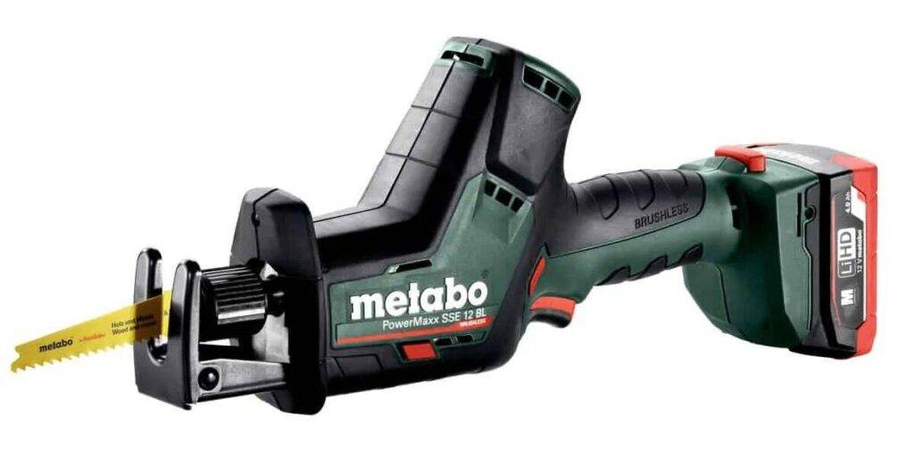 - Metabo – немецкая компания, производящая профессиональный электроинструмент. Она выпускает как сетевые, так и аккумуляторные пилы, отличающиеся большой мощностью, хорошей производительностью, малым весом (около 3.5 кг). Для них характерны обороты в 2600-3100 в минуту, в зависимости от модели, продуманная эргономика, яркая подсветка рабочей зоны, блокировка случайного включения. Все это гарантирует эффективную, безопасную и комфортную работу. Фирма предлагает богатую комплектацию, в которую обычно входит кейс для хранения и транспортировки устройств, несколько пильных полотен, а иногда даже сразу две емких батареи.