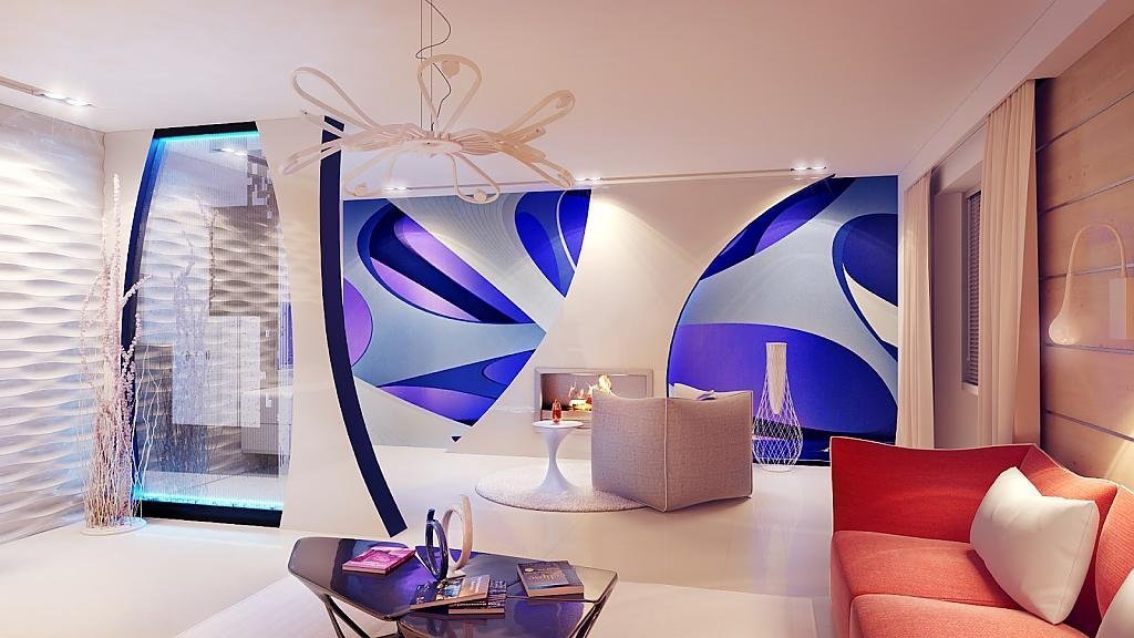 Стили техно, урбанистический и модерн относятся к минималистическим, сдержанным, характеризующиеся четкостью линий. В таких гостиных хорошо смотрятся небольшие стандартные приборы с простым обрамлением. Простоту убранства подчеркнут прозрачные стеклянные конструкции и настенные панели, а дополнительные функции: звуковые эффекты, дистанционное управление, внесут дополнительный комфорт.