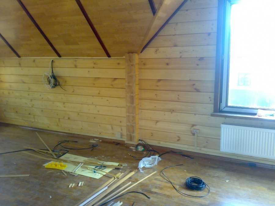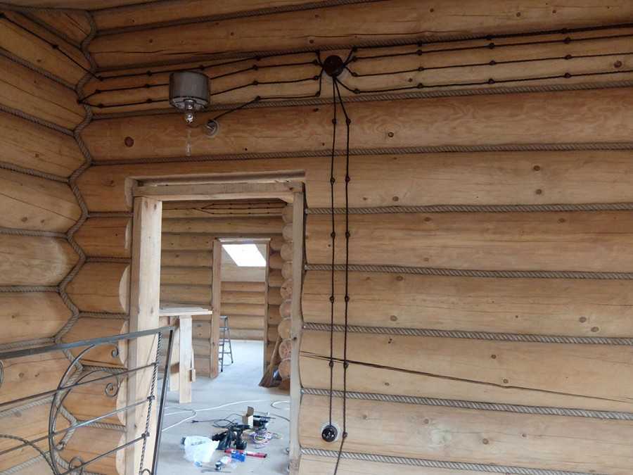 Прокладка проводки в таких помещениях допускается как скрытым (внутри стен, под слоем штукатурки или отделки), так и открытым способом (по стене), с обязательной укладкой в гофру или кабель-канал. Укладка проводки на стены недопустима –при сильном ее нагрева возможно воспламенение деревянных конструкций.