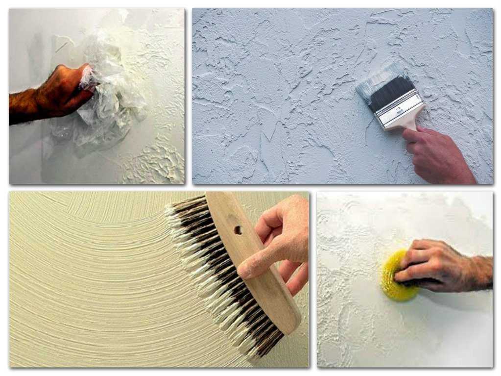 - Интересный рисунок на поверхности можно получить путем наматывания на валик мятой полиэтиленовой плёнки или верёвки. Оригинальные рельефы и рисунки можно создавать и с помощью трафарета.