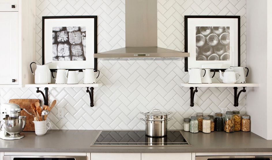 Традиционной кладкой считается кирпичная укладка глянцевой фактурой. Выложенная белая плитка на кухне не крупного размера прямоугольной формы подражает кирпич. Возникает чувство очень крепкой стены с недавней покраской. Традиционная укладка подходит для классики, кантри, скандинавского, прованса, лофта, арт-деко. При добавлении тематических рисунков можно использовать в модерне, ретро, экостиле, винтажном и т.п.