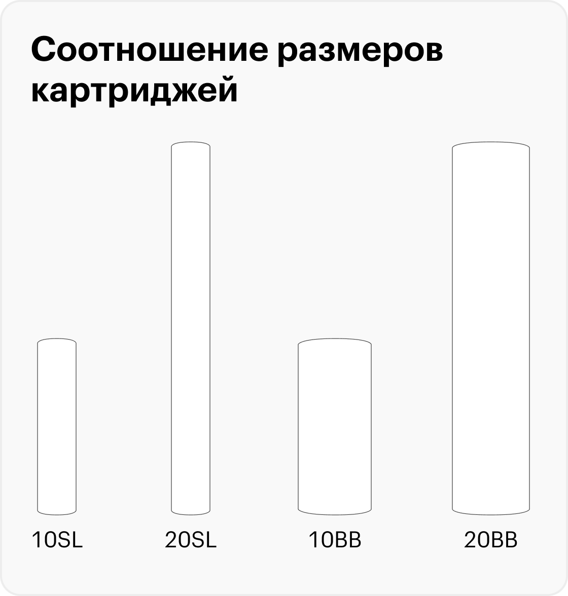 Типоразмер картриджей. От размера картриджа зависит и скорость фильтрации.