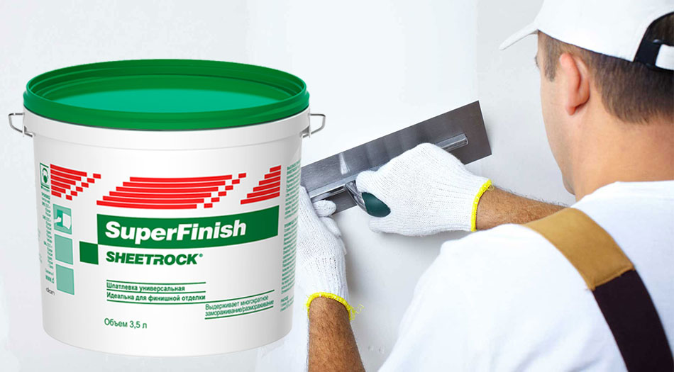 - Sheetrock Superfinish (Danogips) является финишной шпаклевкой. Готовая полимерная смесь имеет высокую степень адгезии, но этого недостаточно для заделки больших трещин и швов. Используется для обработки гипсокартона, окрашенных поверхностей, стеклохолста.