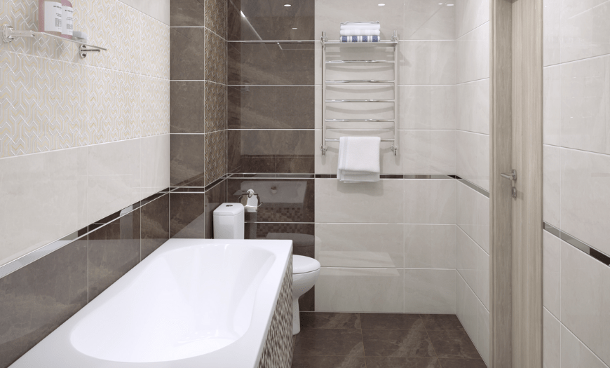 Не рекомендуется выкладывать кафелем вертикальные линии от пола до потолка: это удлинит стены и сделает комнату менее уютной. Такой способ кладки подойдет для просторных помещений с низким потолком.