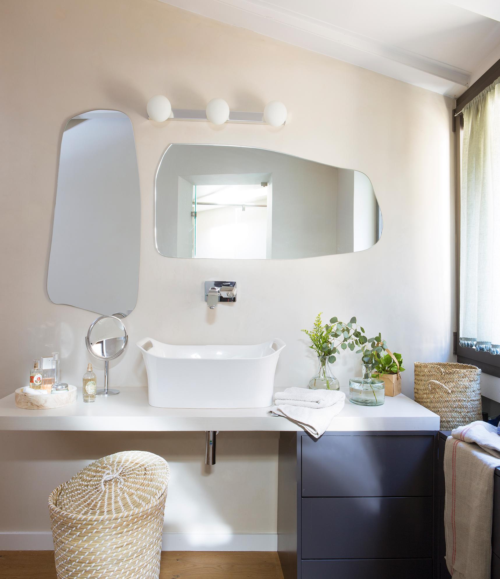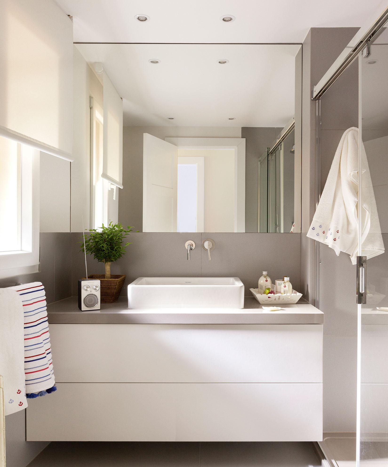 - Если умывальник глубокий и размер позволяет, используйте зеркало-шкаф с распашными дверцами. В маленькой ванной мест хранения всегда не хватает.