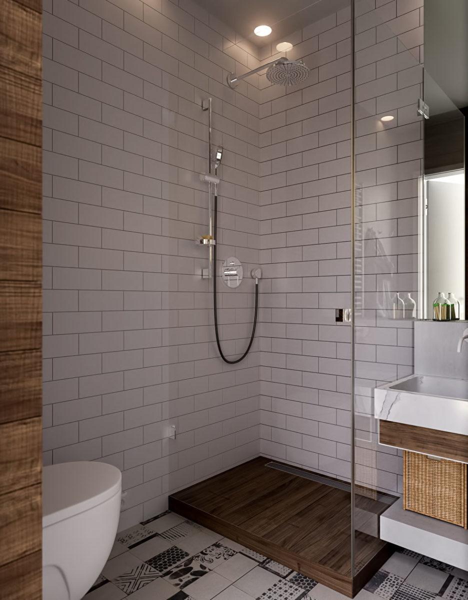 Рациональному использованию имеющегося пространства поможет отказ от ванной в пользу душевой кабины. Существует множество фабричных моделей. Они различаются глубиной поддона, формой, функциональной оснащённостью, материалами исполнения.