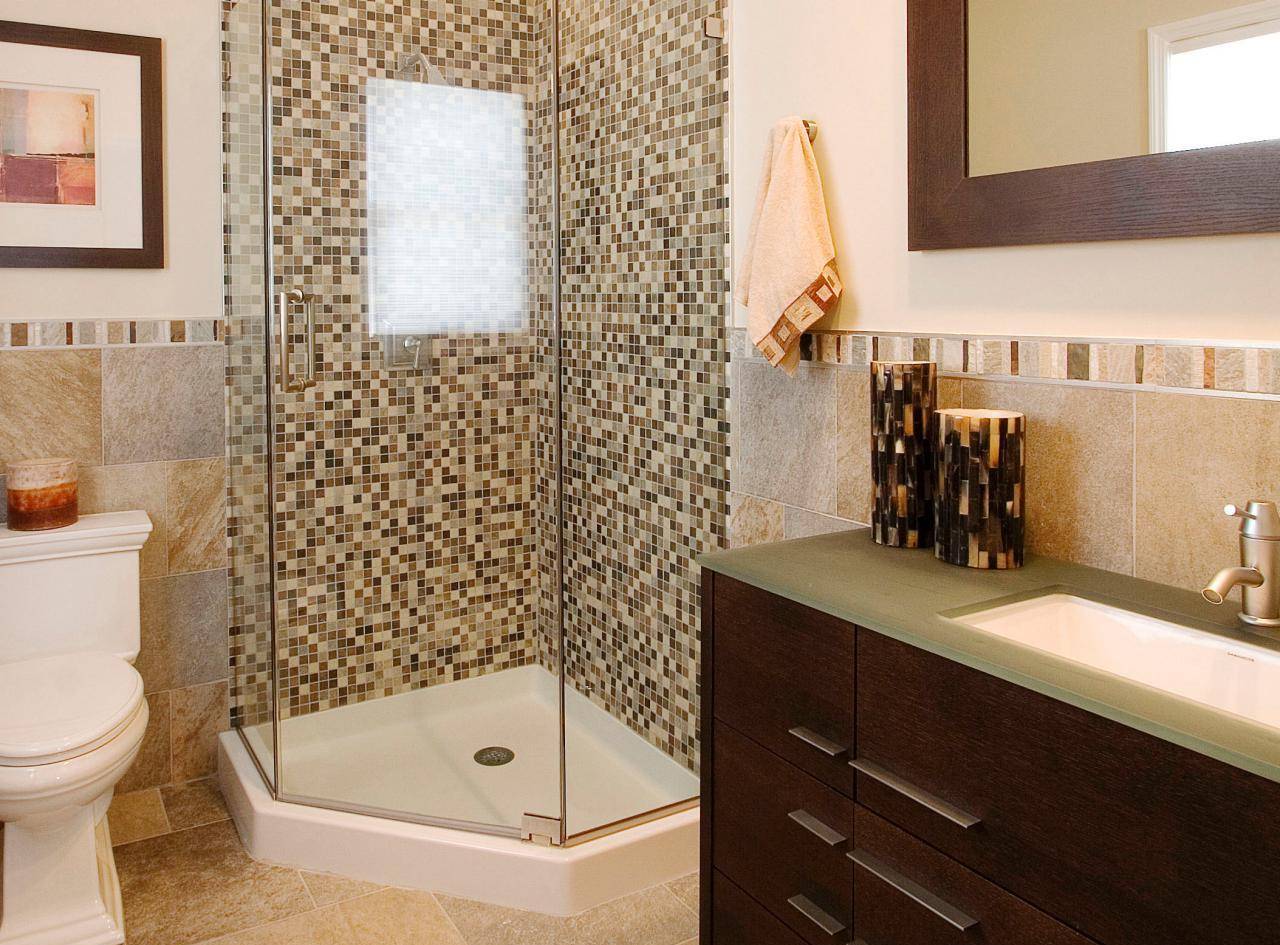 В маленьком пространстве лучше всего применять мелкую плитку (мозаику или небольшую квадратную). Большую часть помещения оформить светлой гаммой с яркими акцентами (при необходимости).