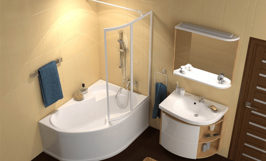 Для большинства помещений подходят угловые ванны, поскольку они занимают меньше места. Параметры самой маленькой из них – 140 х 90 см. Для расширенных пространств подойдут узкие ванны округлой или прямоугольной формы.
