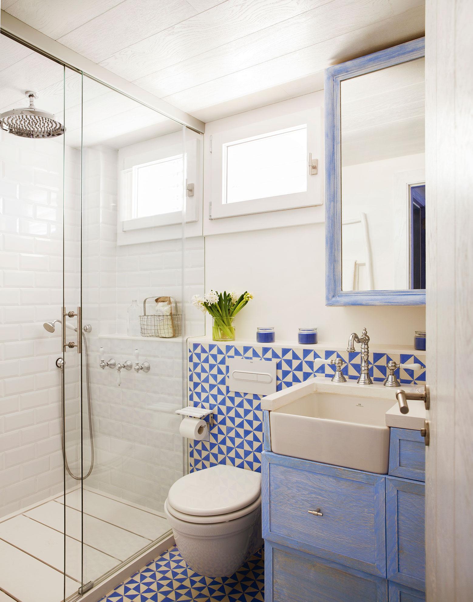 Синий – популярный цвет в ванной, ассоциирующийся с водой, создаст морскую атмосферу.
